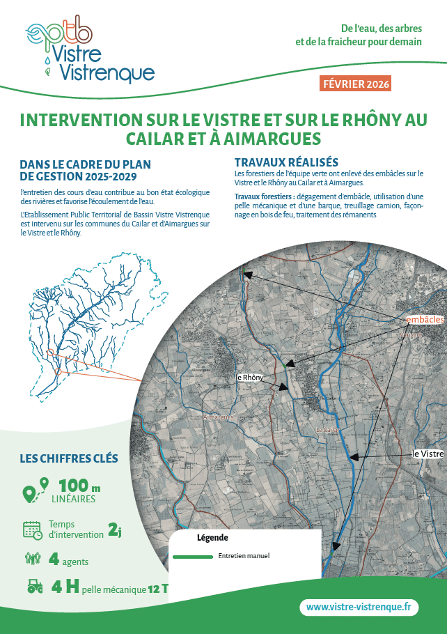Chantier sur le Vistre et le Rhony à Le Cailar et Aimargues