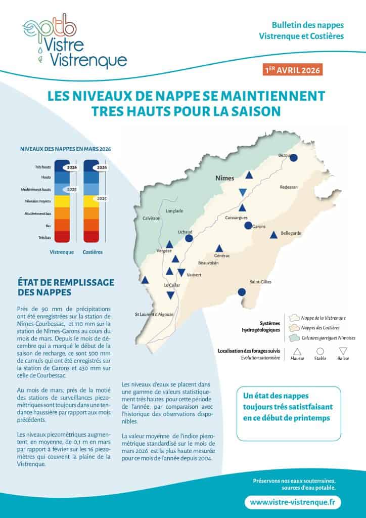 Les niveaux de nappe se maintiennent très hauts pour la saison.