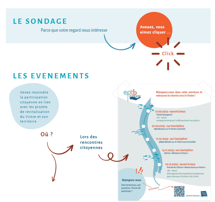 Pour plus d’infos sur la démarche participative autour de la revitalisation du Vistre : https://ateliercmo.wixsite.com/revitalisationvistre