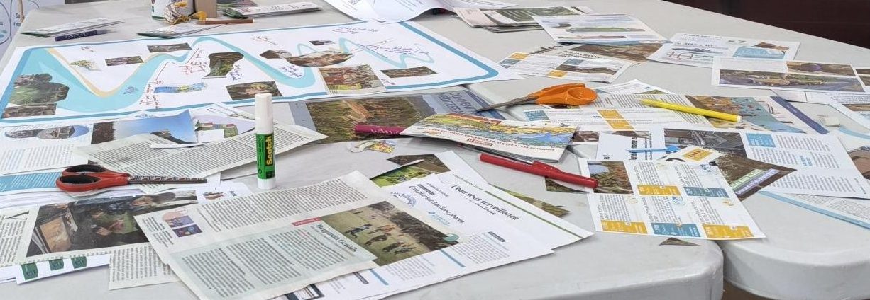 Table de travail des participants à la démarche de concertation citoyenne. Une carte participative des usages de la rivière a été créée.